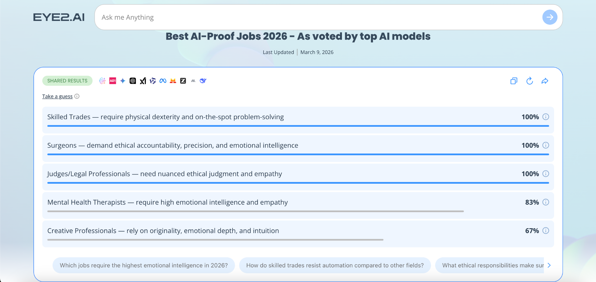 The Shared Results: If you ask about a specific medical treatment, Eye2.AI highlights where models like ChatGPT, Gemini, and Claude agree.
